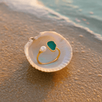• Pagrindinis elementas: Natūrali perla su giliai turkio spalvos emaliuota akmeniu, kuris atspindi jūros spalvas ir gylį.