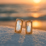 Albertha | Auksu padengti auskarai išsiskiria kaip amatininkystės pareiškimas, susijungiantis su laikmečio elegancija. Įkvėpti Mėnulio atspindžių ir magiško ramybės jausmo, kurį sukelia mėnulis virš jūros, 925 sidabro geometrinė forma sujungta su natūralia mėnulio akmens opaline atspalviu. Kiekvienas pora yra kruopščiai pagaminta rankomis, su detalėmis ir apdaila, sukurtomis perduoti kokybės ir dėmesio žinią. Albertha žada ilgaamžiškumą ir subtilią moteriškumą, tinkantį bet kuriai kolekcijai ir suteikiantį ilgalaikę vertę.