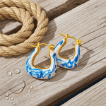 Helene | Auksiniai auskarai plunksnos forma yra rafinuotas amato ir jūrinės įkvėpimo pareiškimas. Nerūdijančio plieno pagrindas su elegantišku auksiniu apdailu susitinka su marmurinių efektų, sukuriant gylį ir blizgesį visomis apšvietimo sąlygomis. Kreminis fonas su mėlynomis gyslomis primena bangas, besitrenkiančias į kranto, suteikdamas amžiną meninę išraišką, tinkamą tiek kasdieniam naudojimui, tiek ypatingoms progoms. Lengvumas ir tvirta konstrukcija užtikrina komfortą visą dieną, nesumažinant ilgaamžiškumo, todėl Helene yra patikimas palydovas per gyvenimą ir amžinos estetikos šaltinis kolekcionieriams. Ribotas prieinamumas suteikia ilgalaikį išskirtinumo pojūtį, kuris traukia kokybei jautrius pirkėjus ir kolekcionierius.